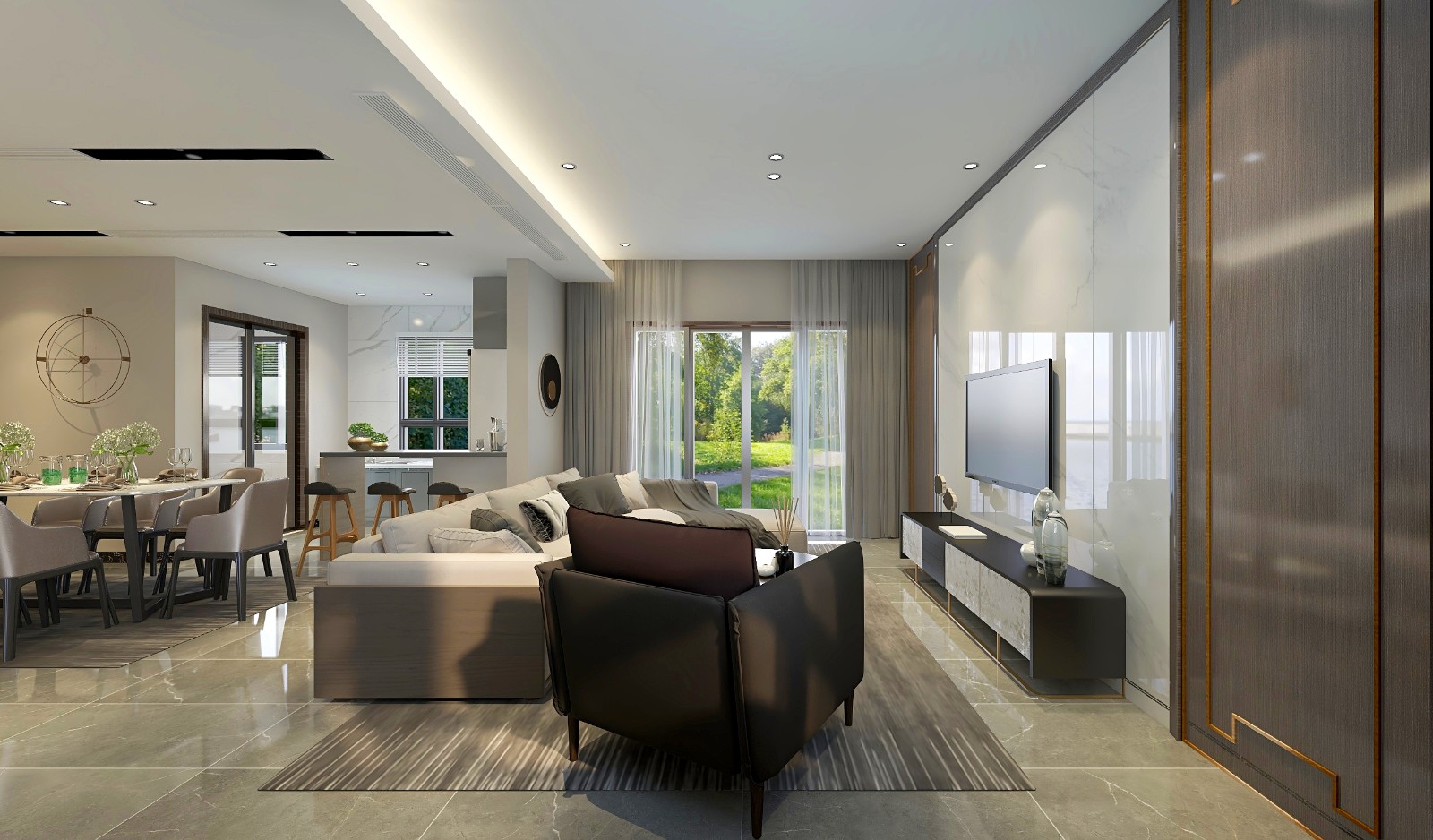 着力点和创新思考放在公共活动空间,特别是客厅的设计:日常使用时,客厅可以分为两部分,可供男主人饮茶、阅读,同时孩子可以在另一侧玩乐;