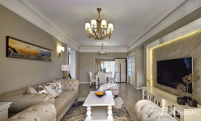 由于家里面积大,户型也比较正,所以装修起来降低了很多难度,使用浅色系,看起来特别温馨。客厅的大窗户采光性极强,家里光线明亮。