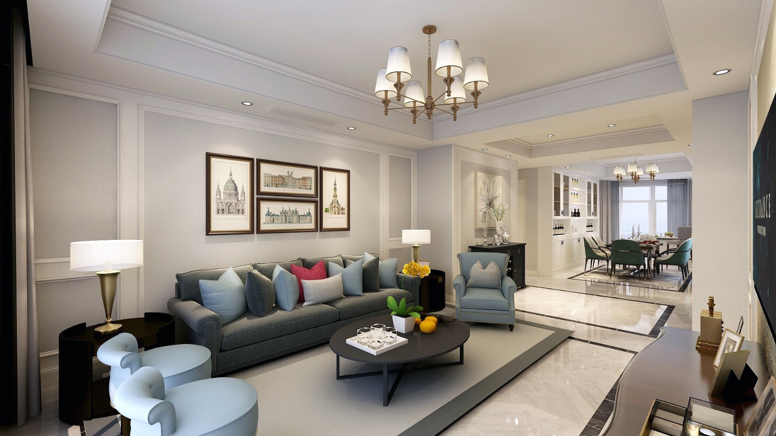 现代化的装饰风格由柔和的中性色主导,浅棕色的地砖搭配较深的电视墙,似饮下一杯摩卡般舒畅,深浅不一的米灰色家具统一视觉,部分的黑色家具使整个空间有了重色的压制,从而更加的和谐与稳重。