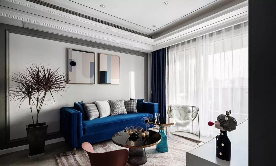 如***一般的天鹅绒沙发,搭配金属镶边玻璃茶几,不同的质感,同样的***感,轻奢气质由然而生。