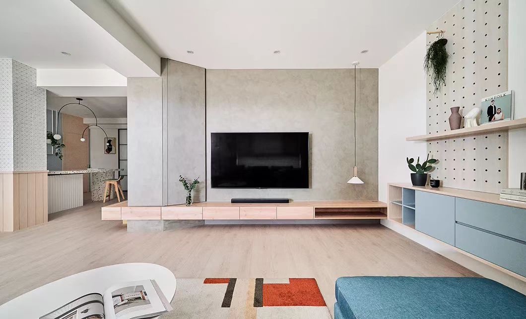 客厅采用清新的色彩搭配,极简上加以艺术渲染;