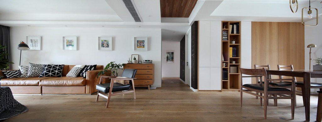 现代简约风格家居装修设计方案,木纹的自然与黑白的干练,让整个横平竖直的空间别具韵味。