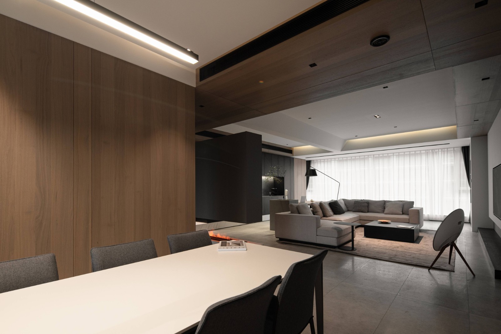 RESTAURANT 餐厅 微水泥制作岛台 和背景的木饰面 冷暖的对比 更有层次