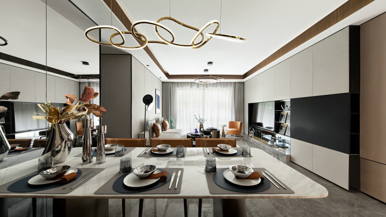空间内的线条与物体皆在设计的逻辑下 遵循统一的韵律与节奏形成家庭核心区的空间语汇。