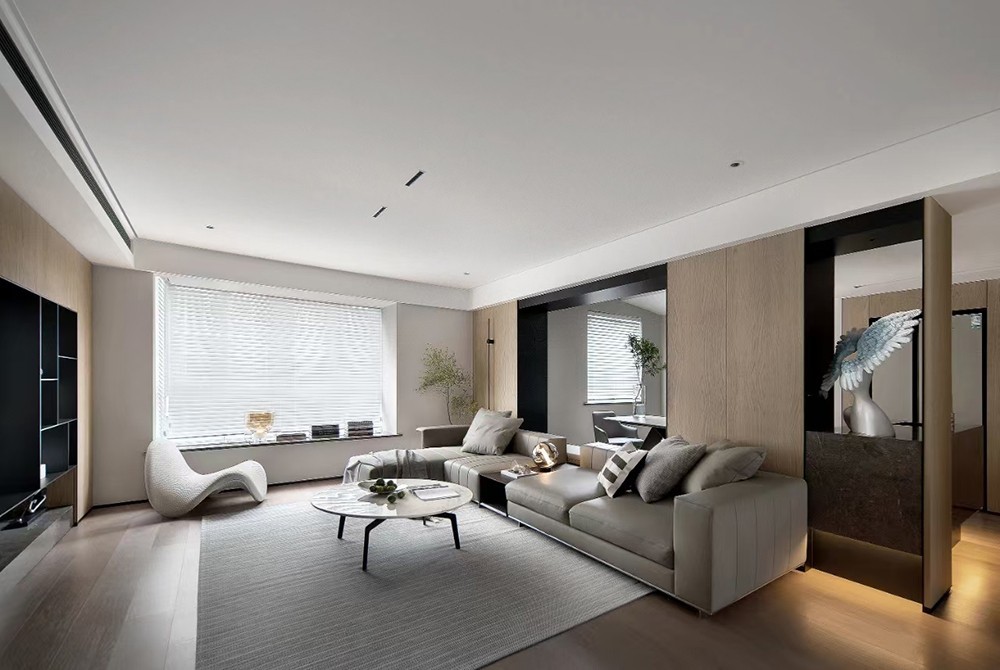 本案的设计宗旨是以简约、质朴的形式与取材,大面积使用白色与灰色,以原木的纹理来点缀空间。白色是温暖的,包容的、内敛的,不张扬的诠释着空间的一切可能性,让光与影在室内达到平衡。
