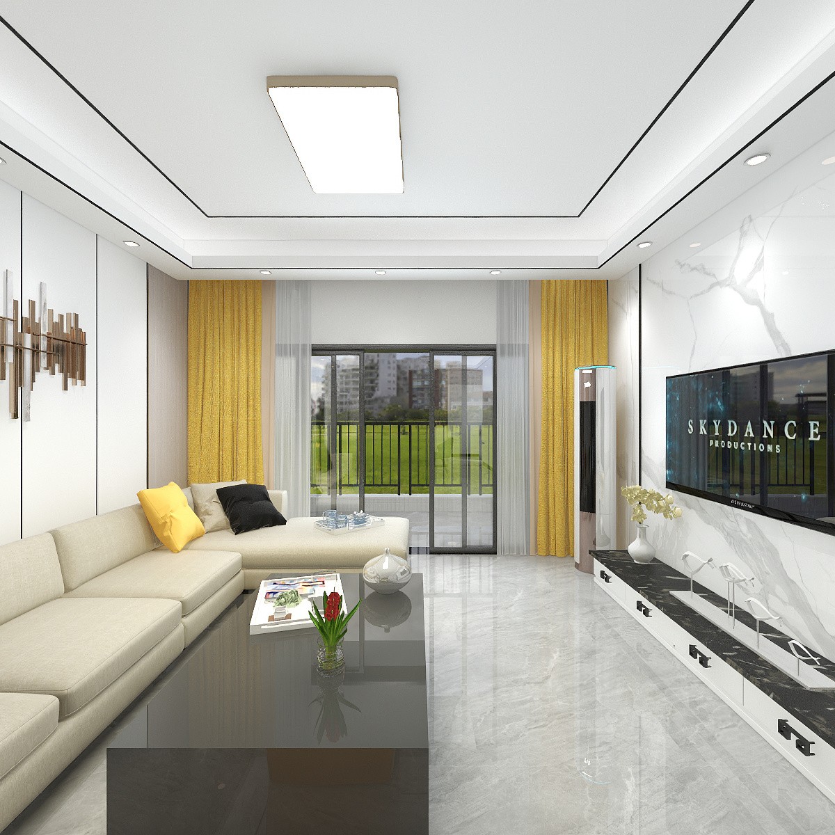 沙发选用了棉质材料,给人一种舒适的体验,颜色方面选择了黄与黑的搭配,形成了视觉上的反差