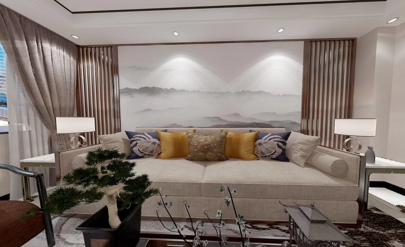 定制山水壁画加格栅。