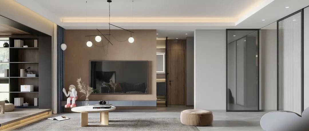 沿着过道缓缓步入客厅,以低饱和度的单色和素净色彩为主,带出简约***的空间体验感。过道隔墙介入一道长虹玻璃门,玻璃材质实现隔而不断,不仅让空间更显利落,视觉上也更通透有层次。