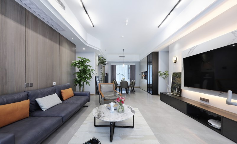 大面积的暖色木质与极具质感的灰调家具相辅相成,让一切都显得那么流畅,将家该有的温度涌入空间。