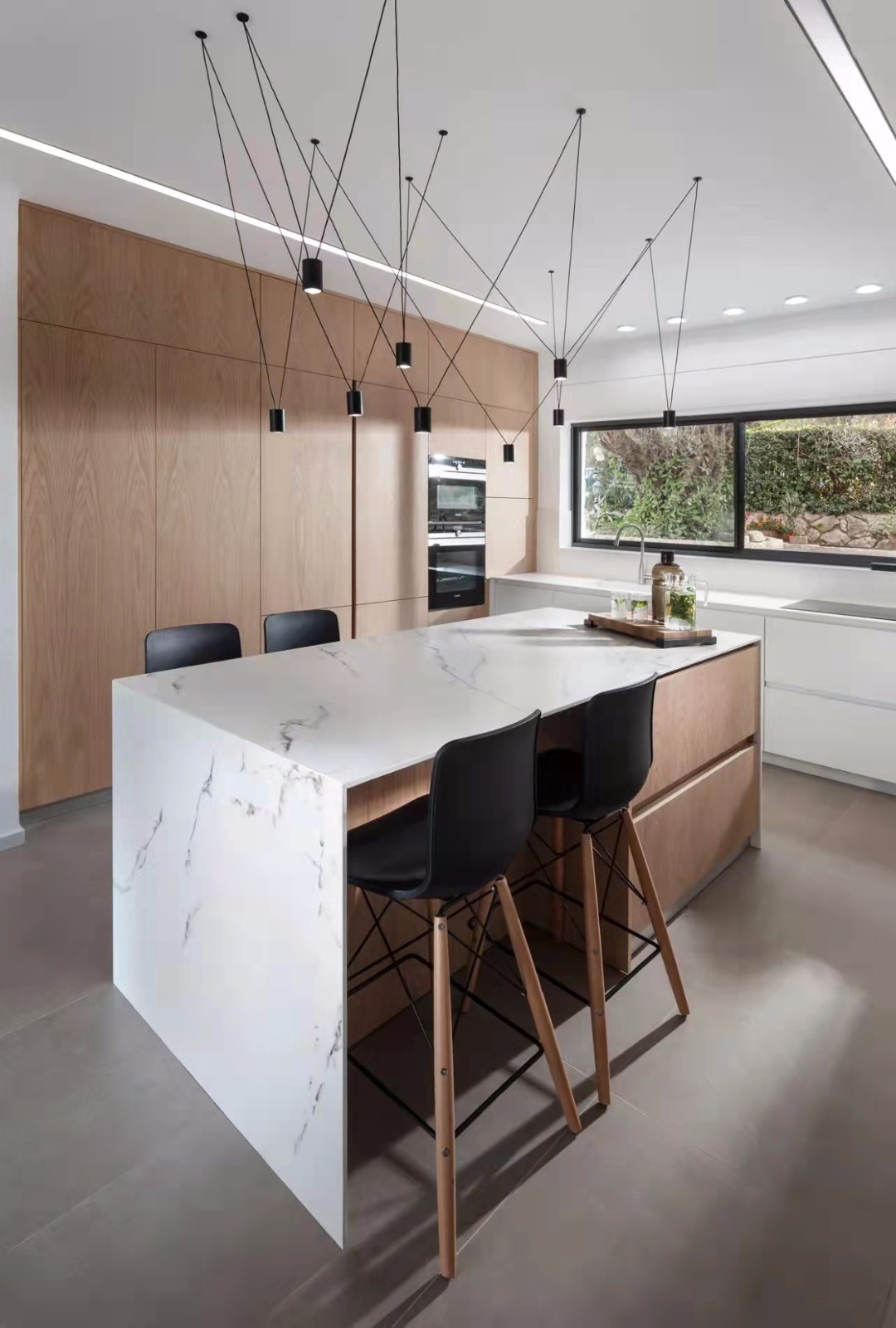 户型是常规的两居室,窗户可以调整,布局是开放式的厨房客厅,业主需要和家人一起做饭一起交流的氛围。
