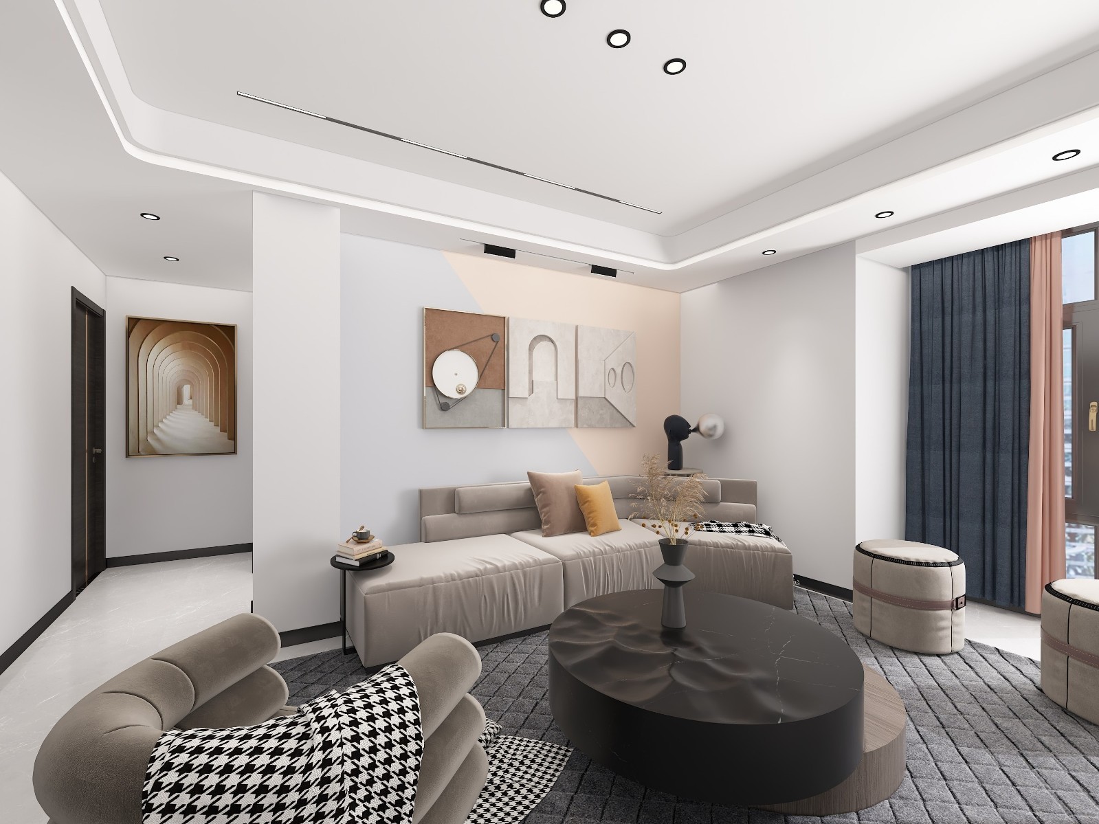 沙发背景采用拼色的一个设计