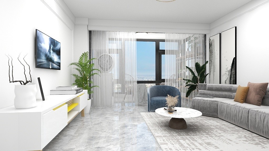 客厅简约大气,轻色调空间显大。