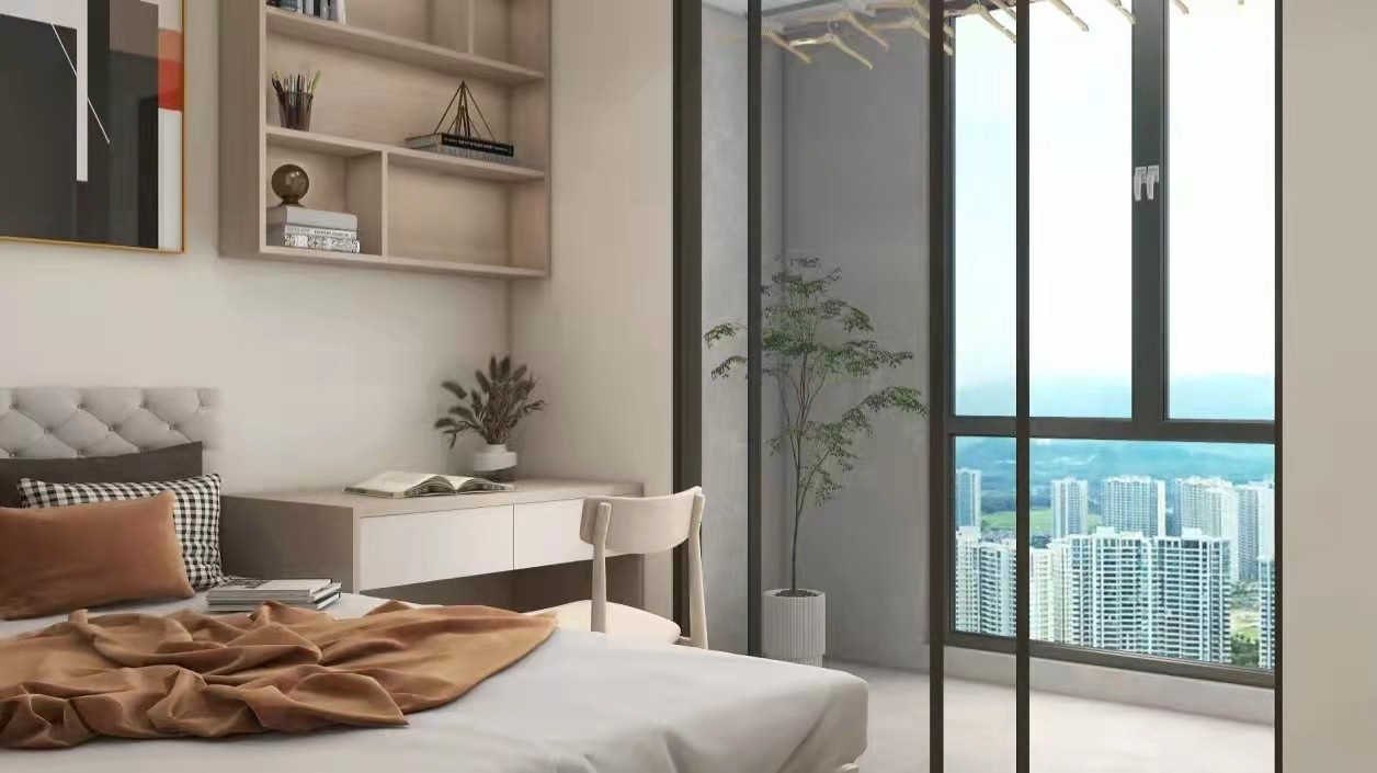 次卧连接阳台 光照较好 放个书桌不影响学习