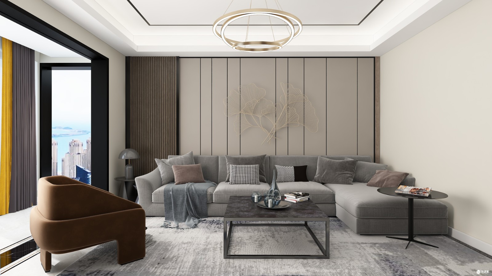 客厅布置左耳沙发搭配玄关设计,视觉上可能感觉空间狭小,总体却动静区分的恰到好处,结合阳台景观,大气尽显。