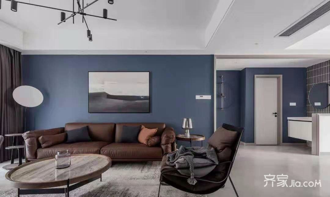 客厅深蓝色的沙发背景,奠定了空间安静舒缓的基调。