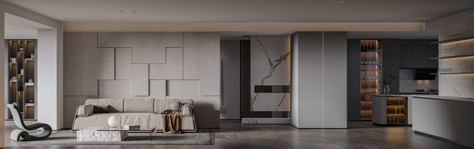简单的黑·白·灰色彩搭配出宜居的空间色彩,让居者在进入空间后享受家的温暖,回归心灵的平静。