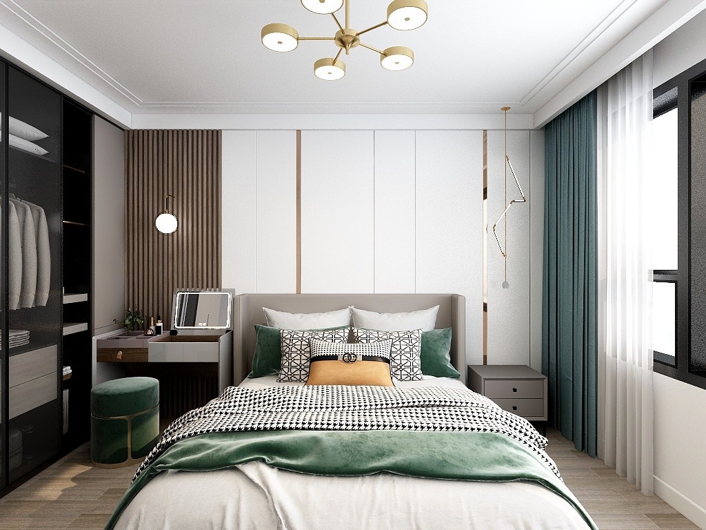 浪漫温柔是家的定义,钟爱的色彩是温暖的明调, 温柔的暖色窗帘和白色纱帘***限度的将自然光引入卧室,光线进入室内空间,阳光把心情也照亮了。