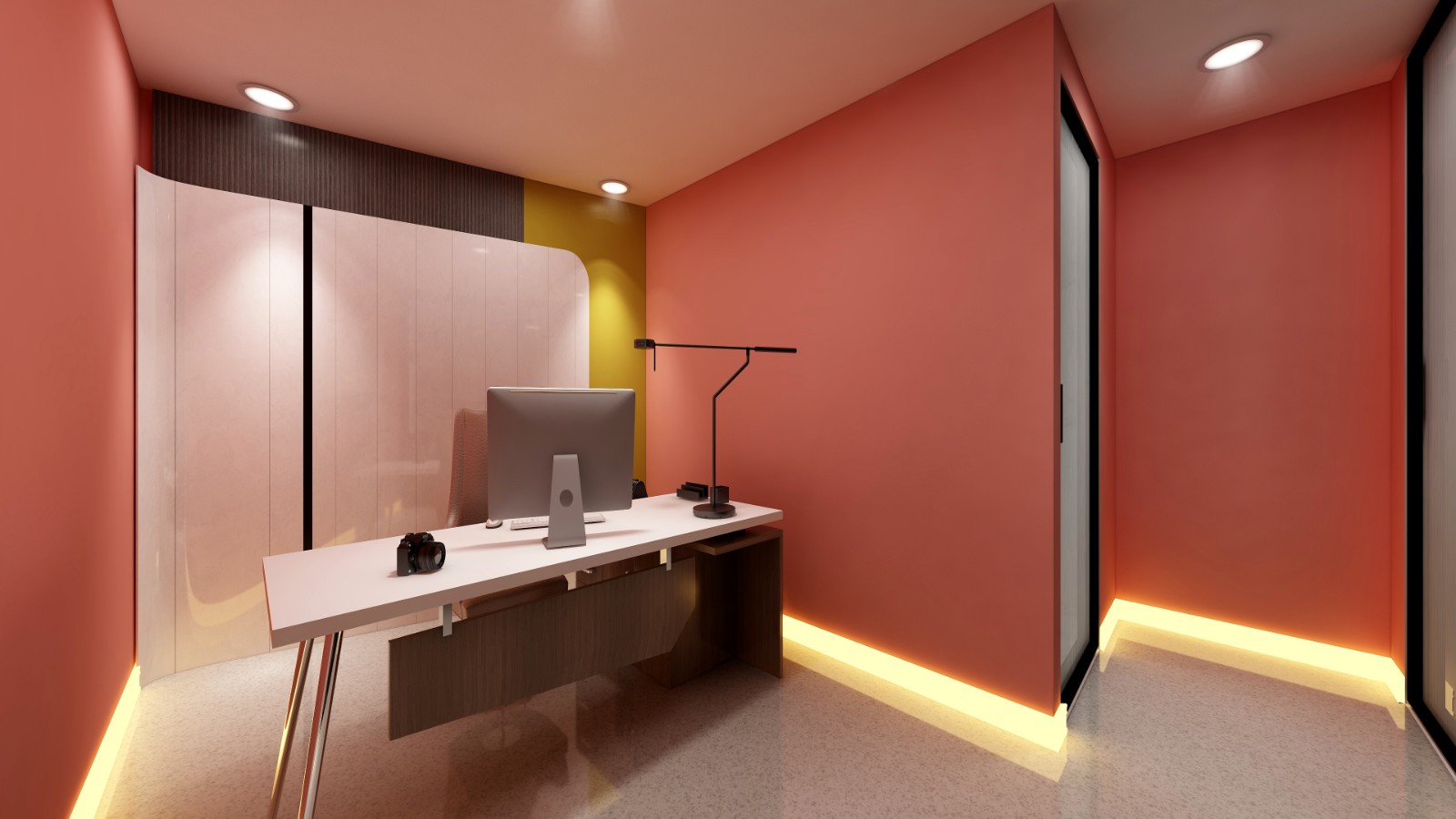 撞色设计的主管办公室,简直太美了。