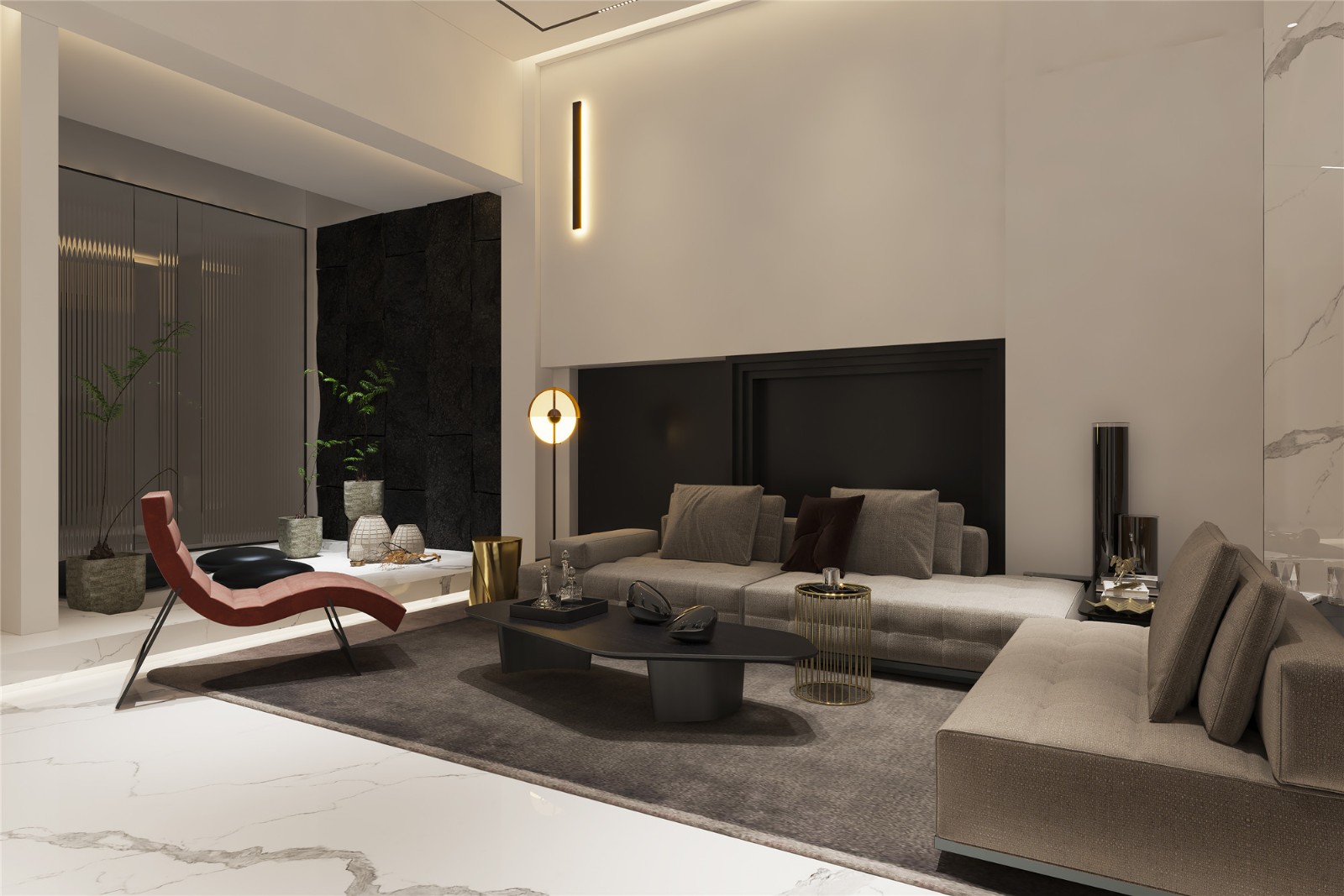 客厅旁旋转楼梯设计,时尚轻奢,设计感十足。