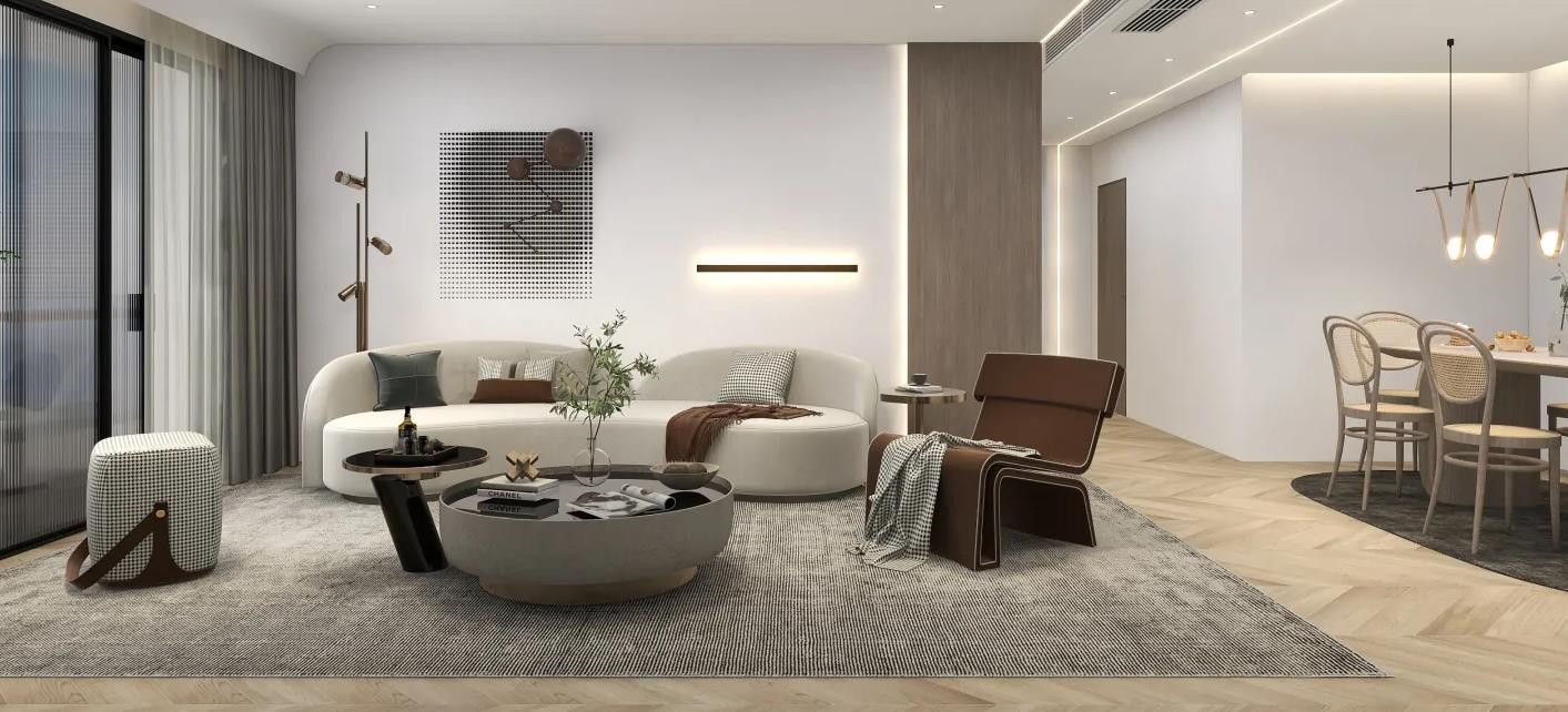 卫生间的设计简洁,用深色地砖以及深色墙砖搭配,整体房屋的氛围烘托下,带来一个冷静而简约的空间