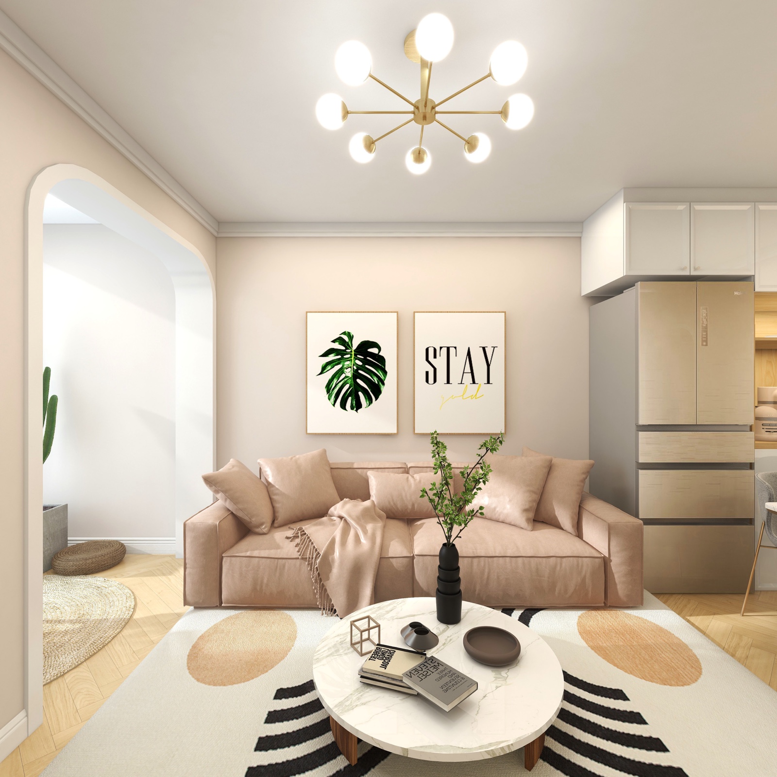 客厅靠近阳台,阳台的垭口做了圆弧的设计。