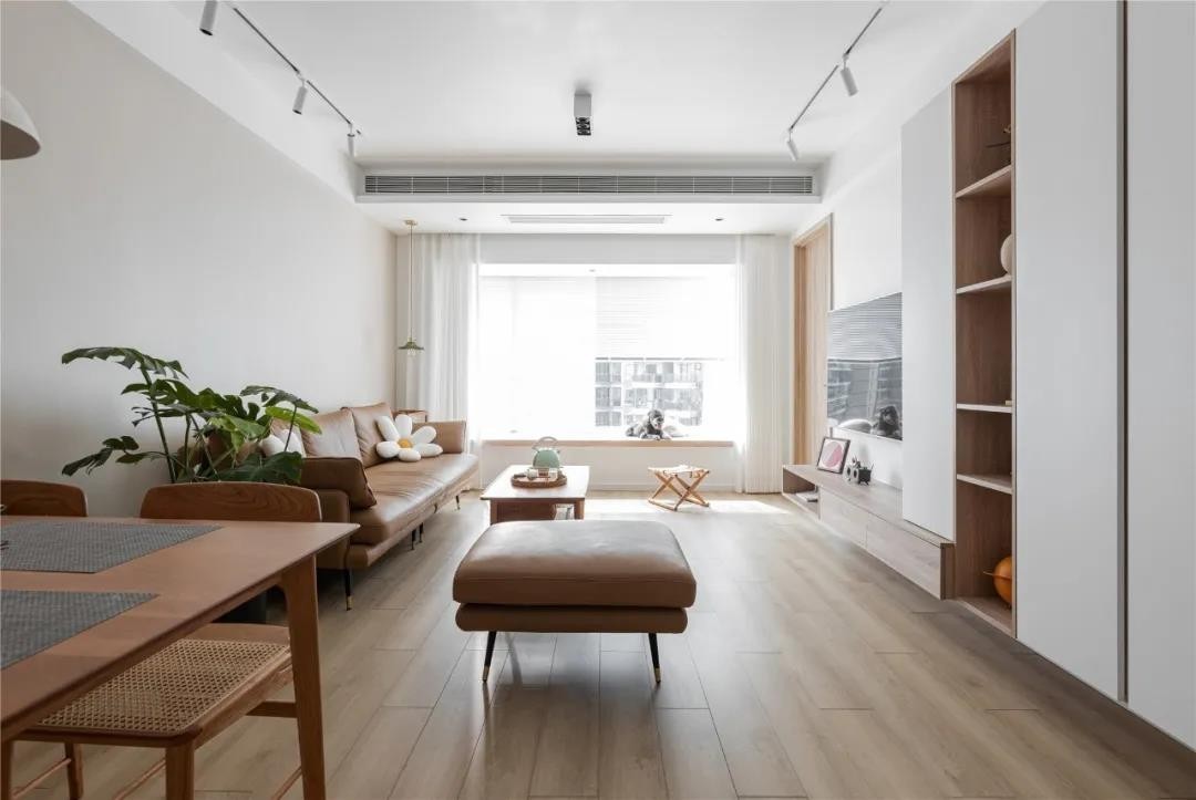 客厅经过改造后实际使用面积要比原始户型小一些,但视觉上看起来却更加宽敞明亮。