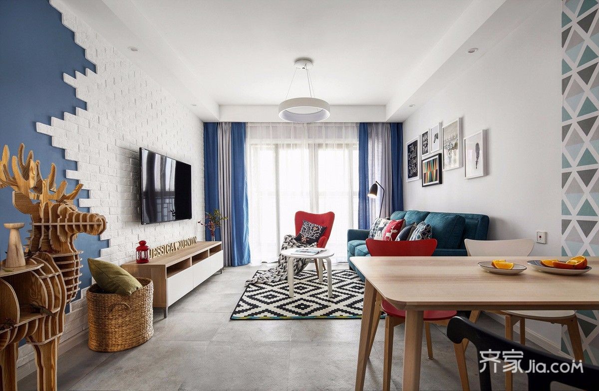 以简约为主,多用木制家具,墙面多为蓝白拼接,