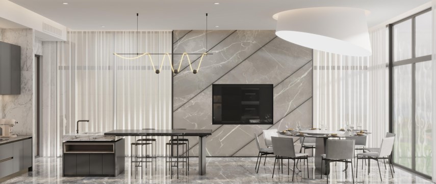 餐厅背景做了岩板的设计