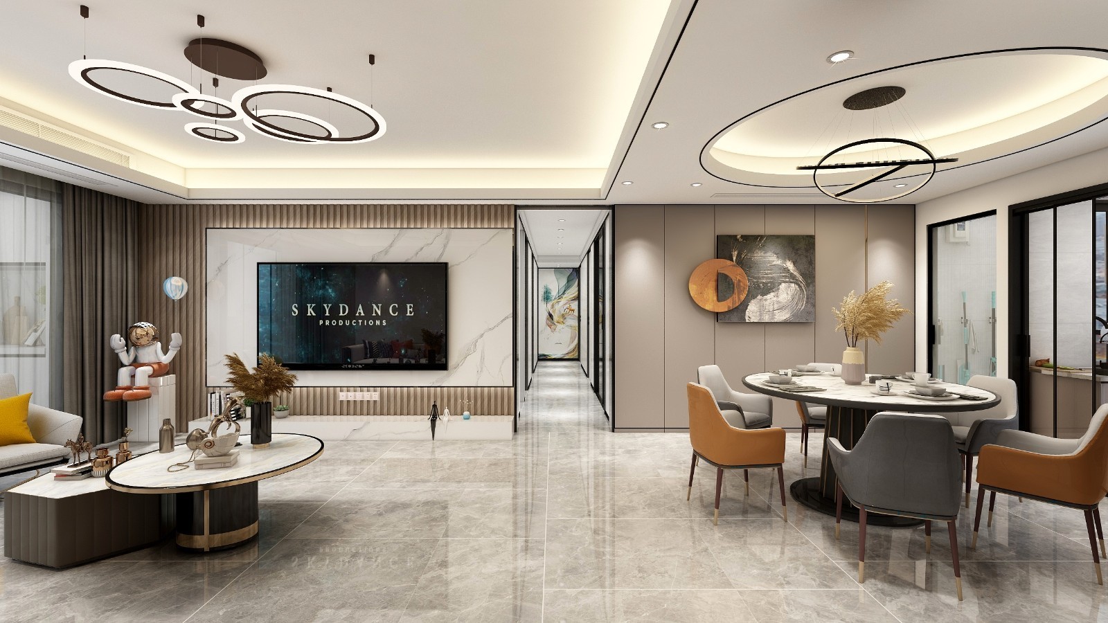 需要酒柜,双开门冰箱,圆形餐桌,方便接待更多的客人