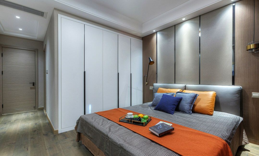主卧采用撞色的设计,重新打翻对大白墙卧室的定义,空间充满灵动感。