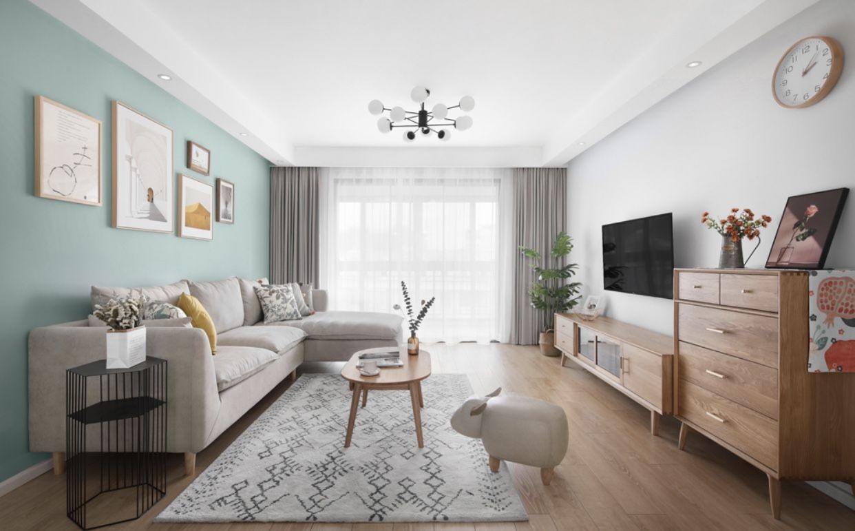 客厅的阳台打开后,带来充足的光线与开阔的空间视觉,宁静的光影在瓷砖倾泻温柔,营造出温暖、惬意、明媚的氛围。