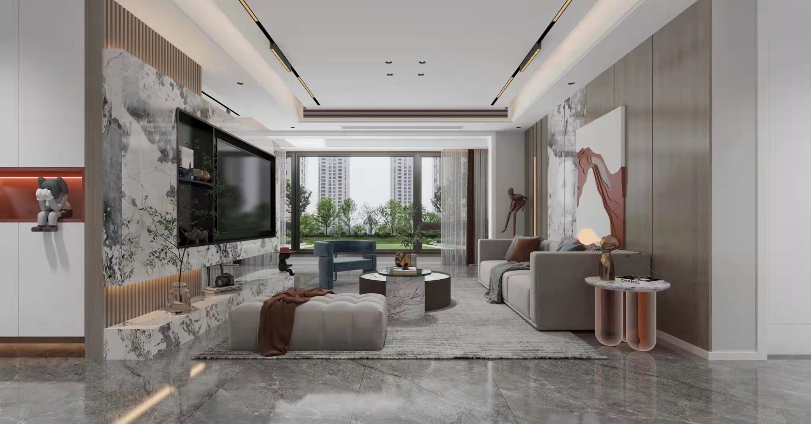 灰色地砖,搭配暖色软装