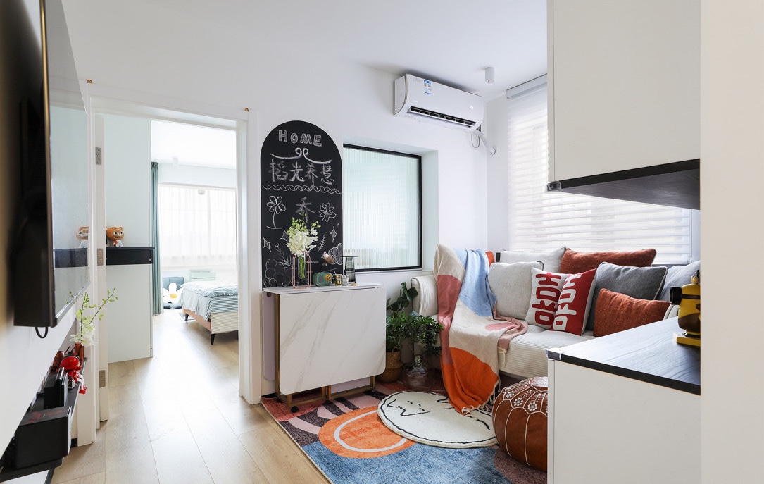 处理好有限空间与实际需求之间的真实矛盾, 需要设计师更深入的思考和更多探索的勇气, 通过巧妙设计,规避「小」的系列隐患, 将舒适、整洁、有序藏于日常深处。 本案屋主为90后小夫妻, 喜欢年轻气息的家, 此外因为家中储物空间不足, 希望增加居室内的收纳空间。 干湿分离的卫生间, 一室三用的客厅, 通透的烹饪空间, 舒适度满分的卧室 ...... 我们用设计,让空间有了更多可能性, 为屋主打造出一个