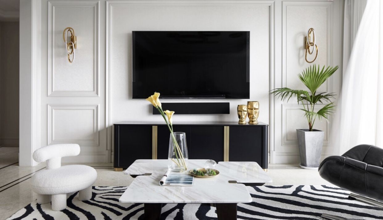 电视背景墙简洁干练,让原本清冷的空间,增添了自然温馨感。