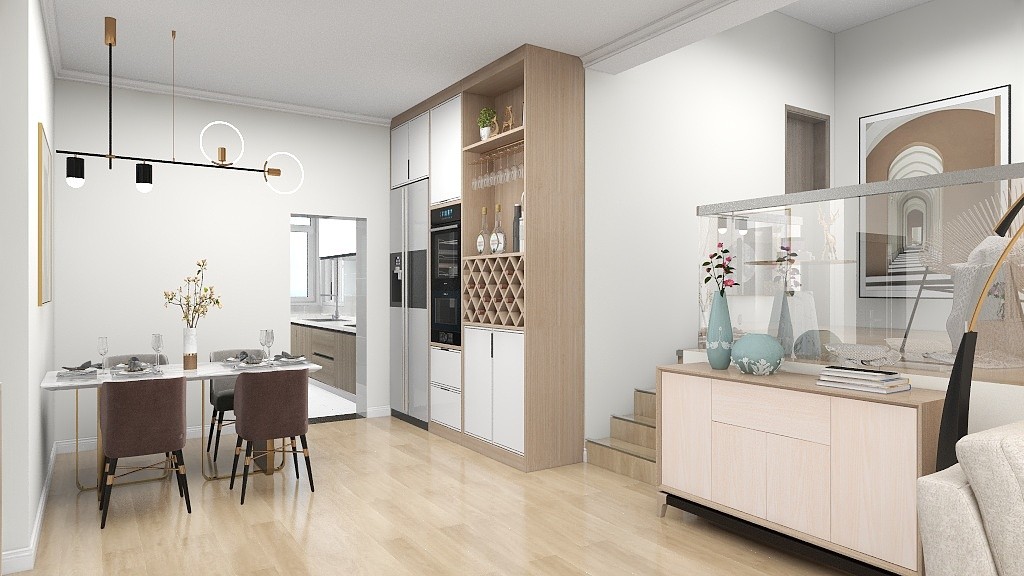 餐厅背景强既美观又增加了整体储物需求