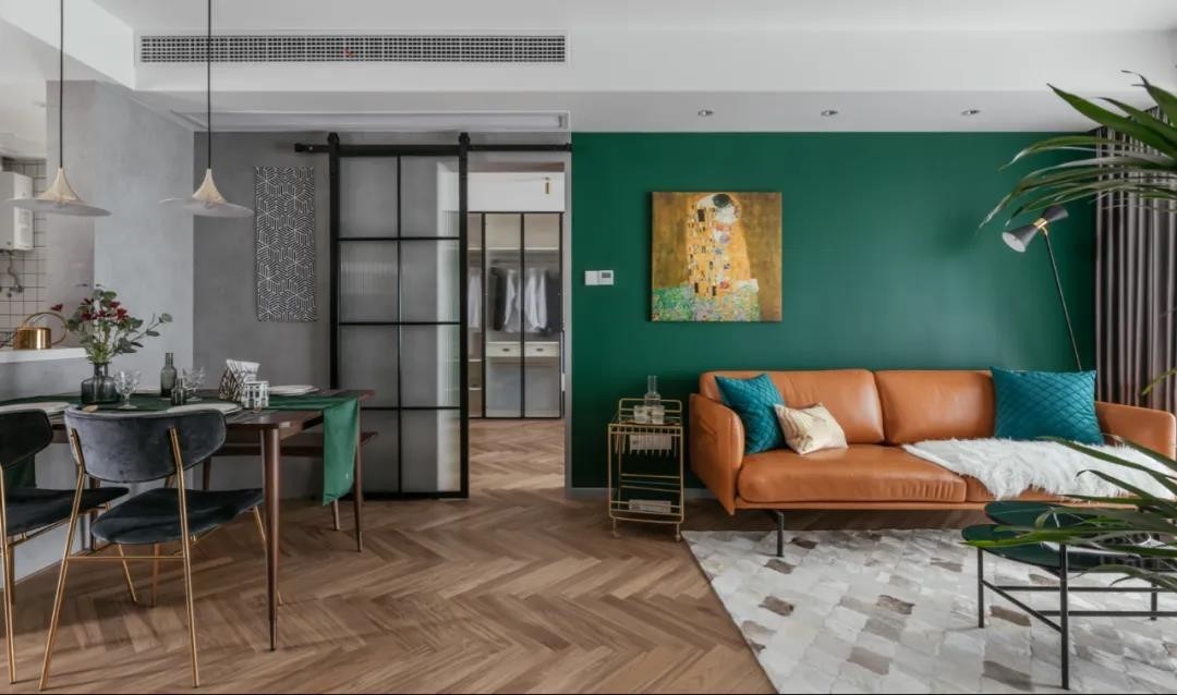 木地板是人字铺的拼接设计,还有无主灯的空间以筒灯的照明方式,呈现出一种精致***的清新感。