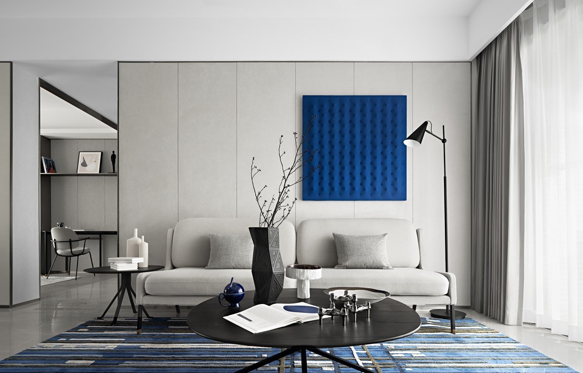 在简约的空间格调中,又以蓝色作为点缀