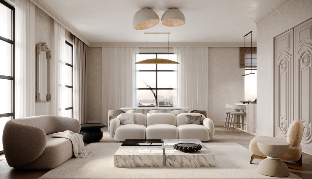 灯如珍珠,沙发似云朵,纯洁的原木色给纯净的空间注入一丝活泼。
