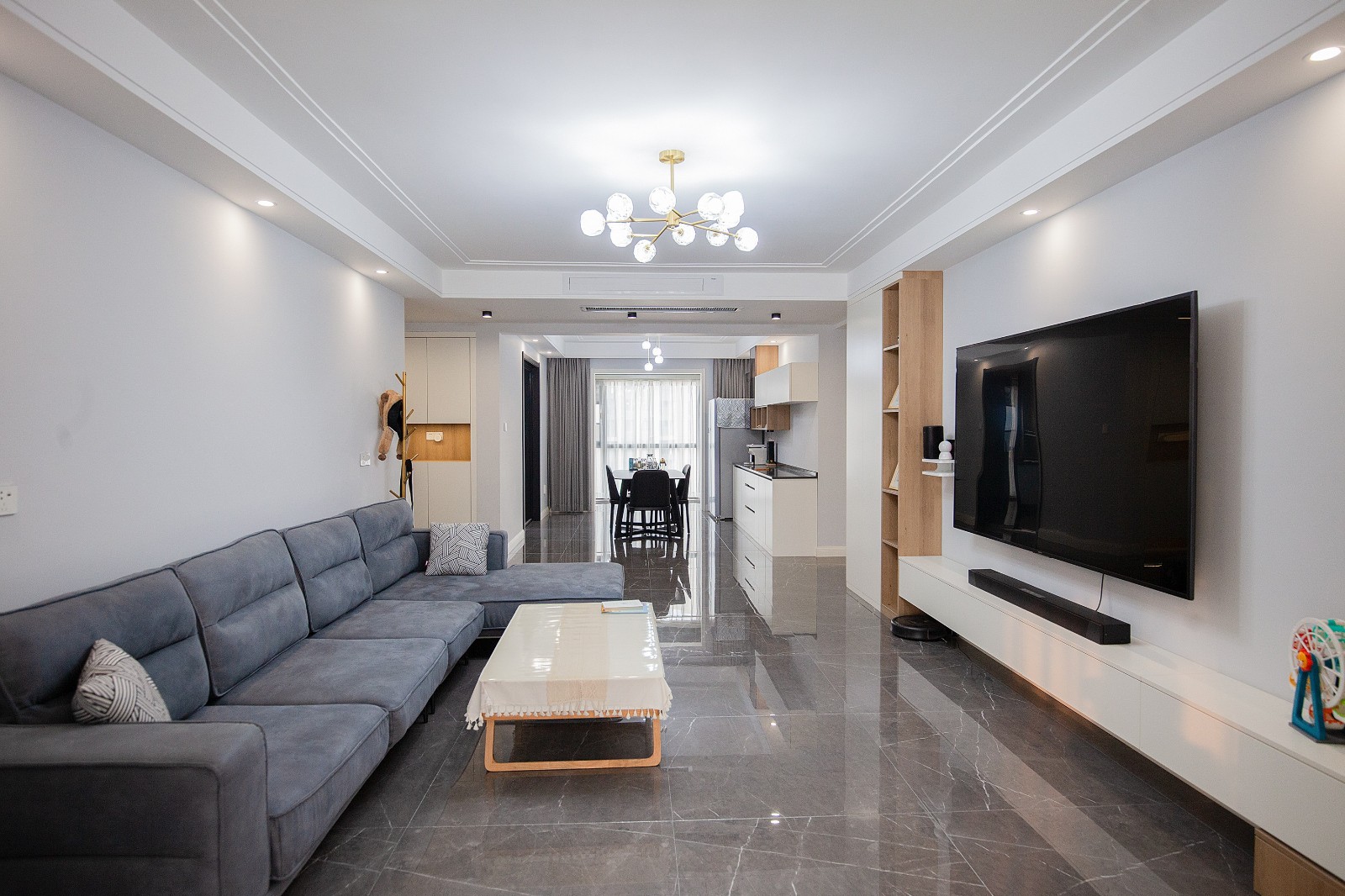 电视柜开放与封闭组合,有藏有露。简约干净的白色,质感温润的原木色,用最少的“视觉噪音”,满足的功能需求。