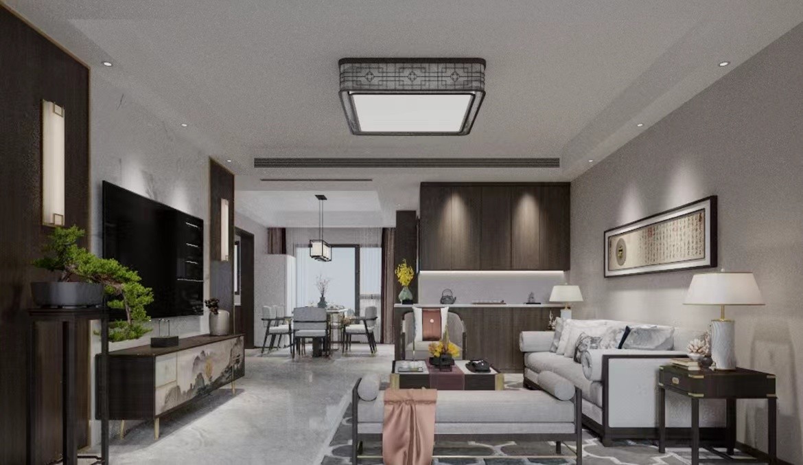 客厅复古却带有谢意,凝重不失闲适。放眼整个空间看客厅,对称的布局,明亮宽广