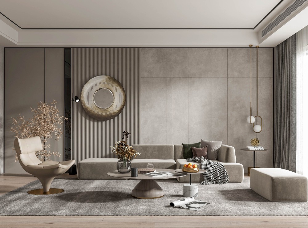 灰色岩板与墙咔带来情绪上的和谐统一 自然光浸润下,蕴生出沉默温柔的力量