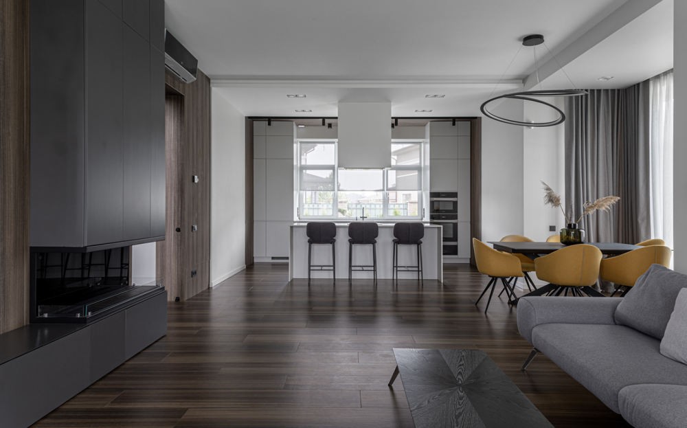 西厨的开放空间增加了与客餐厅的交流和互动,充分打开后的客餐厨空间,四面而至的光线和空气可以在室内自在行走