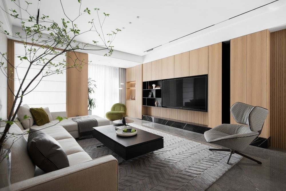 点缀原木色木饰面,于理性中增添一丝柔和,