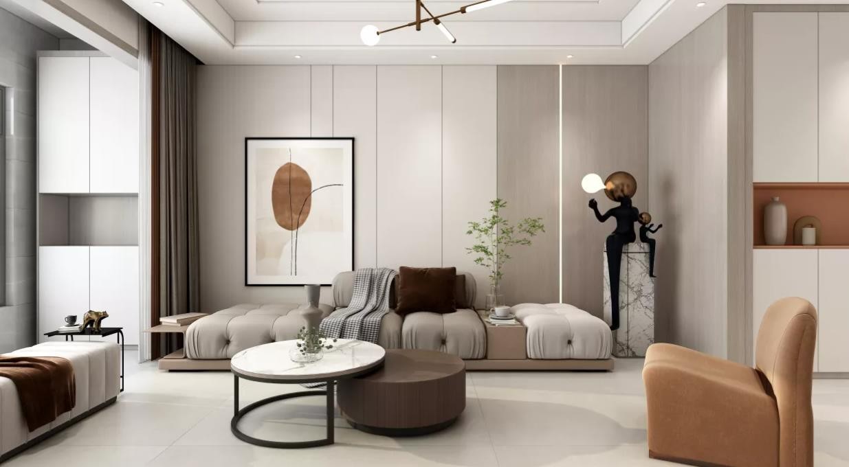 以简约为主,力求让空间成为主人的安静生活的天地;从明确的空间功能划分,到整体家具的搭配,以人性化的设计让生活简单之中,多了小温情;色彩上,以灰色和白色为主,同时搭配黑色和其他色彩,营造着素雅、宁静的氛围。