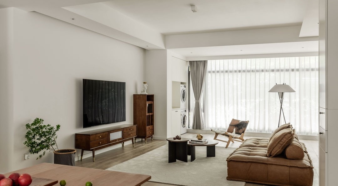 公共活动区秉持开放式的设计理念,打通客厅与相邻小房间的隔断,并将阳台纳入其中,大空间的形与势由此显现出来。木色与素简白铺就干净的空间底色,软装家具可以在空间中徐徐展开,打造出干净优雅的大客厅