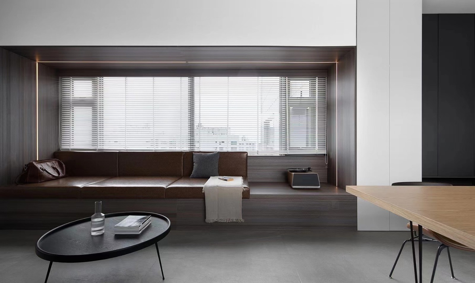 我们取消了常规沙发的布置,直接利用大飘窗来替代沙发。