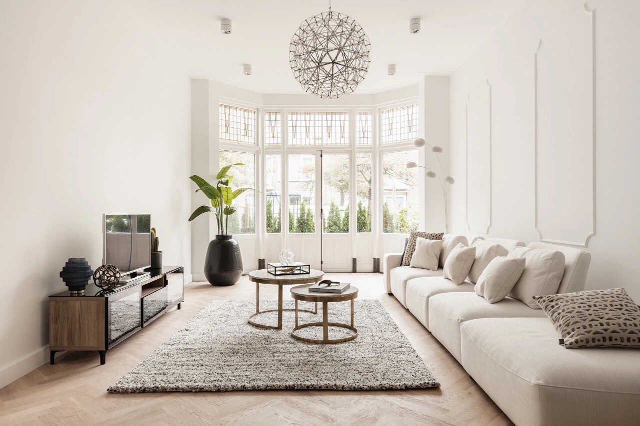 客厅整个空间简约精致,给人的感觉是优雅,高贵,轻巧的艺术风格。
