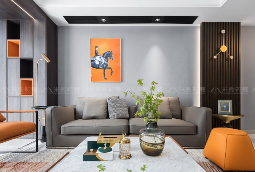 电视墙,沙发区域正视角。