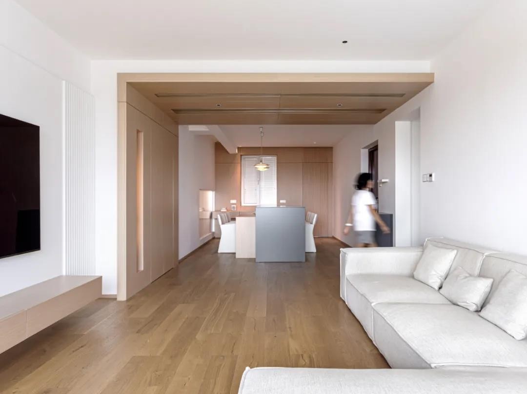 干净的白墙与温润的木饰面共同构成了家的颜色,屋主偏好温暖简洁的日系设计。