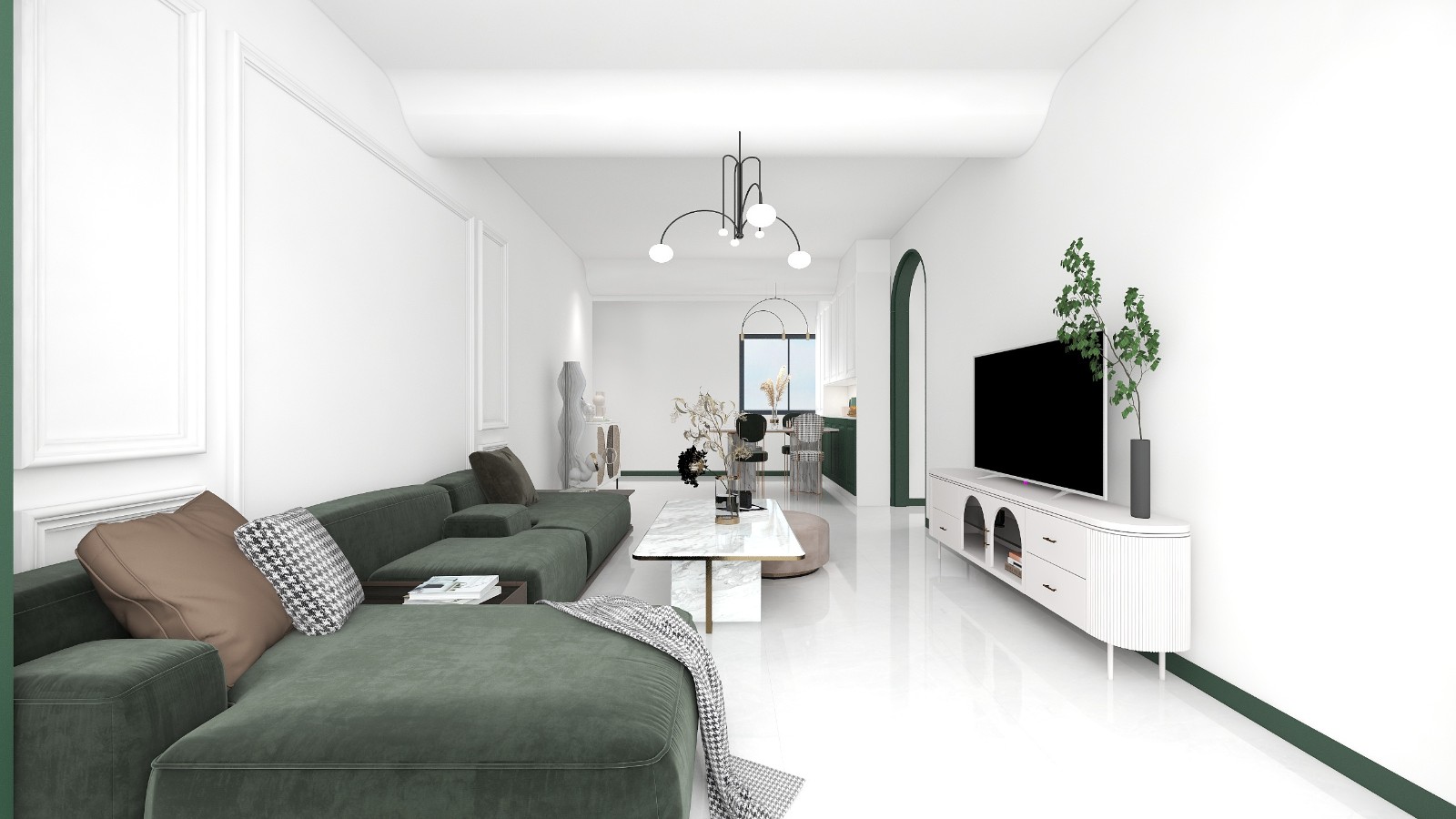 天花由于梁位原因,做了弧形处理,似人生,波荡起伏,但过了低谷总会有小确信